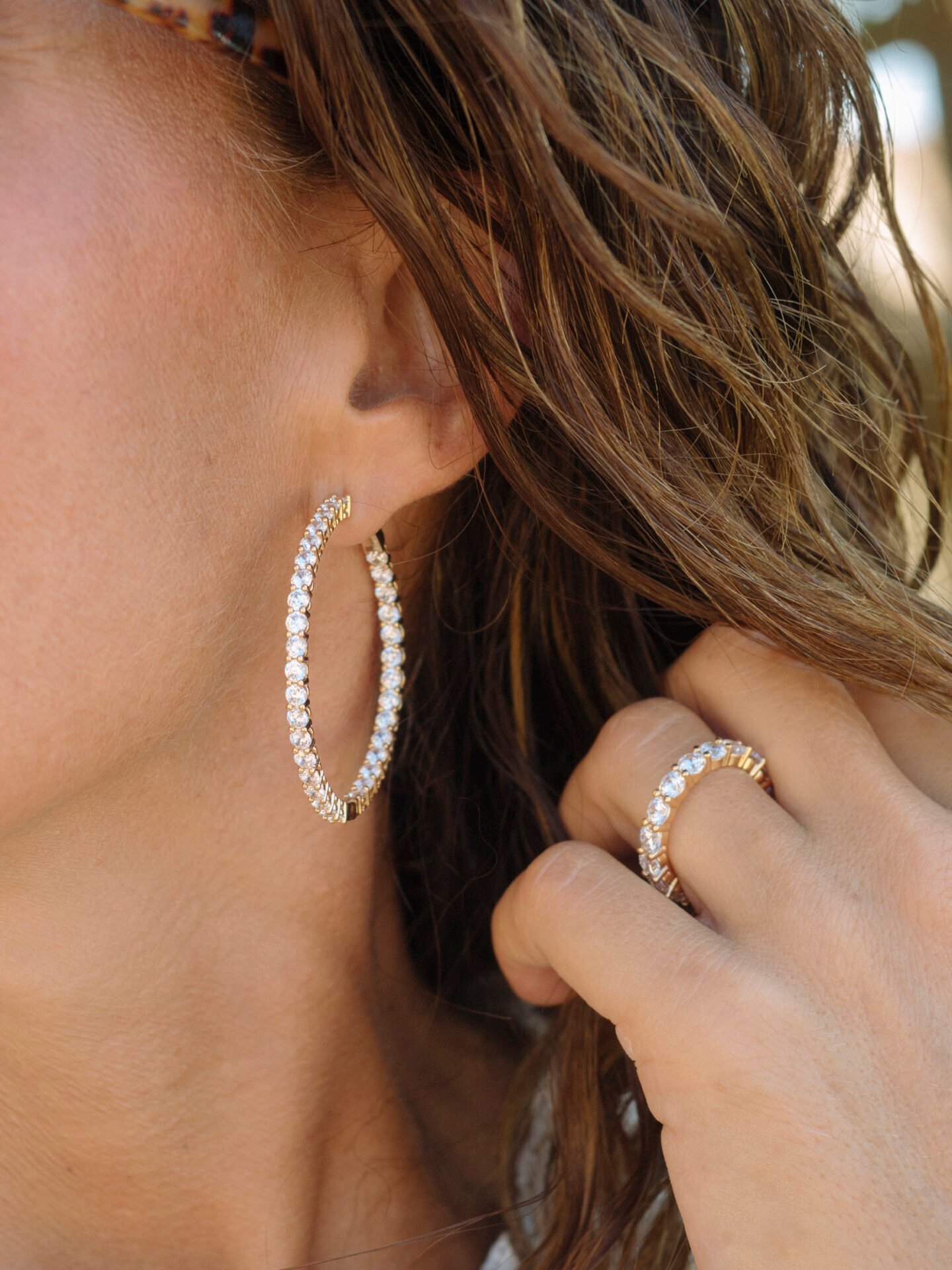 Pendientes de aro en latón chapado y piedras Swarovsky.